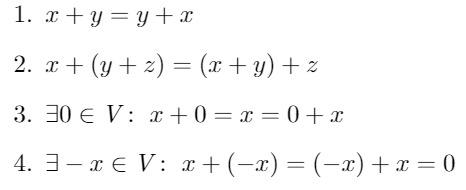 denotada suma, la cual cumple con las siguientes propiedades para todo trío de elementos x,y, z en V :